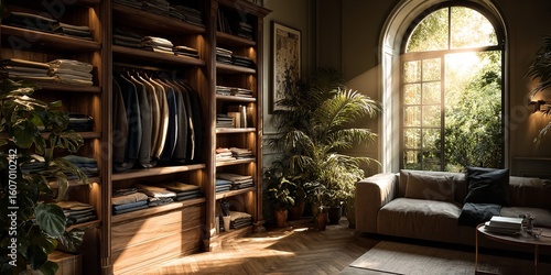 clothes rack, organised, apparel, shelving, texture, jean, shirt, storage, folded, minimal, lifestyle, clothing, textile, casual attire, cosy, soft, homelike, interior, garment, decor, bright, layout, apartment, stylish, clean, closet, room, table, chair, home, furniture, hotel, window, architecture, house, wood, luxury, nobody, floor, living, inside, design, indoor, sofa, light, lamp, chair, living room, wall