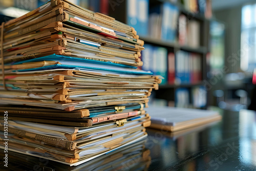 Neatly Organized Financial Documents and Paperclips on Clerk's Desk in Office Setting