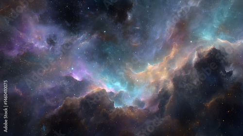 Nebula, 4k digital painting of space, stars, colorful nebulous nebulae, black, dark wallpaper, futuristic background, galaxy