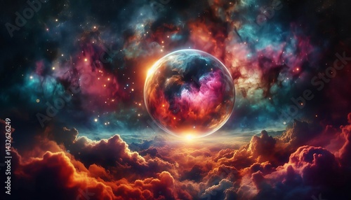 Nebula Clouds Sphere against a backdrop of colorful nebula cloud