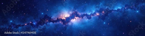 Nebulae and stars against a deep blue space background , galaxy, cosmos