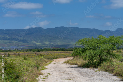 hawaii, oahu, honolulu, road, landscape, nature, sky, mountain, path, river, tree, summer, forest, grass, travel, rural, green, dirt, hill, water, lake, tree, mountain, trail, track, outdoors, hiking, cloud