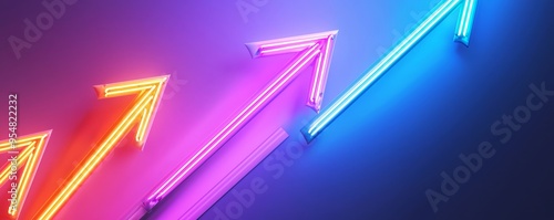 Neon arrows pointing upwards, vibrant energy, digital look, 3D illustration