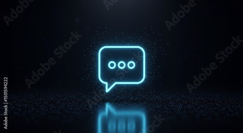 chat, message, communication, speech, bubble, icon, digital, technology, interface, neon, blue, light, dark, background, glow, abstract, pixel, particle, sparkle, shiny, modern, futuristic, network, connection, conversation, online, social, media, web, design, element, symbol, graphic, illustration, concept, future, innovation, cyberspace, contact, talk, speak, dialogue, discussion