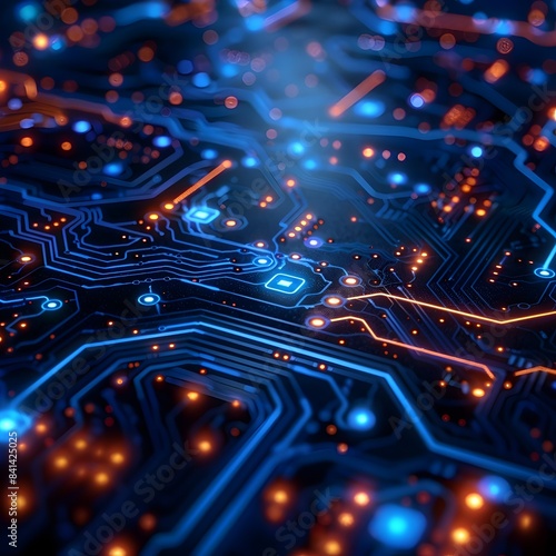 Neon Blue Circuits on Dark Background Ideal Tech and Futuristic Product Display