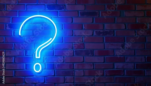 Neon blue question mark on brick wall, Doubt, and exam concept. Quiz design. Vector stock illustration on a dark background, banner, poster created with generative ai