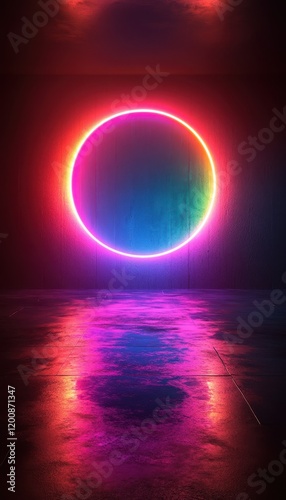 Neon Circle in Dark Room