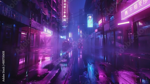 city landscape, street, night, neon, light, urban, building, street light, city, architecture, wet, asphalt, rain, fog, mist, dark, glowing, bright, modern, futuristic, futurism, colourful, high-coloured, dynamic, energetic, vibrant, atmosphere, mood, fantasy, art, design, digital, illustration, graphic, concept, abstract
