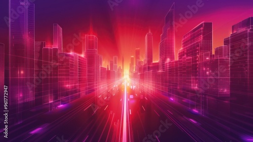 city, skyscraper, neon, night, speed, line, blur, futuristic, urban, digital, technology, light, glowing, modern, architecture, city landscape, abstract, graphic, design, art, artwork, street, highway, road, travel, concept, illustration, future, style, graphic, retro, motion, dynamic, bright, high-coloured, colours, purple, red