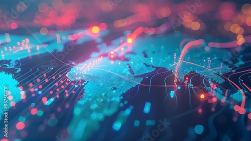 Neon Data Connections on World Map, Business Theme, Background, Neon, Data Connections