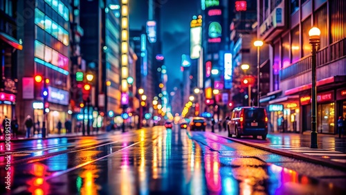 Neon Dreams: A Symphony of Blurred Lights on a City Street at Night AI generated