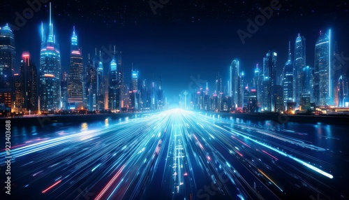 "Neon Dreams: The Ultimate Cyber Metropolis at Night"night, light, city, show, fountain, water, architecture, building, laser