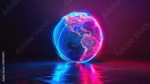Neon Earth Network Beautiful neon hologram planet AI generated images