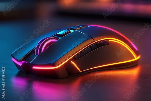 Neon Gaming Mouse: High-Tech Peripheral, RGB Lighting, Ergonomic Design, Precision Engineering