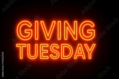 Neon "Giving Tuesday" on a black background. Global Initiative charity, as opposed to a culture of unrestrained consumption
