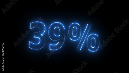 Neon glowing 39 percent icon illustration. on black background. Abstract 39% percent text neon illustration. and creating a stunning 4k illustration.