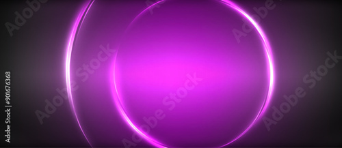 Neon glowing circle rays, light round lines in the dark, planet style neon wave lines. Energetic electric concept design for wallpaper, banner, background