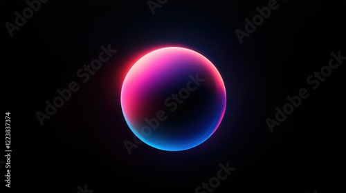 Neon glowing sphere floating in dark space abstract shape glowing vibrant pink blue hues modern futuristic digital art design for backgrounds posters tech themes mood mysterious