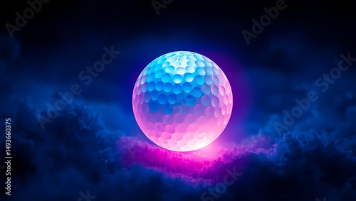 golf, golf ball, neon, cloud, night, sport, glowing, blue, pink, modern, abstract, texture, dreamlike, fantasy, surreal, illustration, bright, vibrant, graphic, energy, competition, skill, game