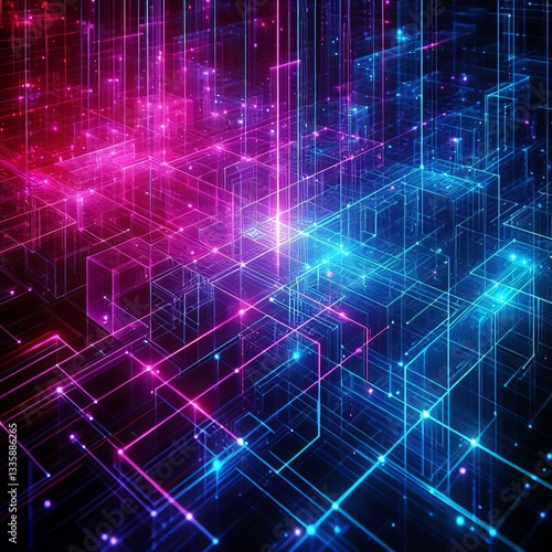 geometric, structured, high contrast, dark background, intense, technically, digital, abstract, art, neon, grid, electric, blue, pink, dark, black, background, futuristic, aesthetic, light, effect, high, contrast, render