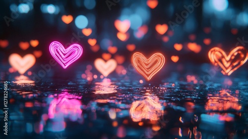 Neon Heart Lights Abstract Background