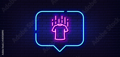 Neon light speech bubble. Dry t-shirt line icon. Laundry shirt sign. Clothing cleaner symbol. Neon light background. Dry t-shirt glow line. Brick wall banner. Vector