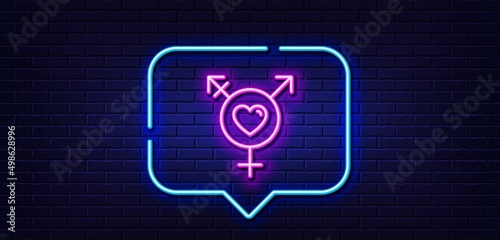Neon light speech bubble. Genders line icon. Inclusion sign. Gender diversity symbol. Neon light background. Genders glow line. Brick wall banner. Vector