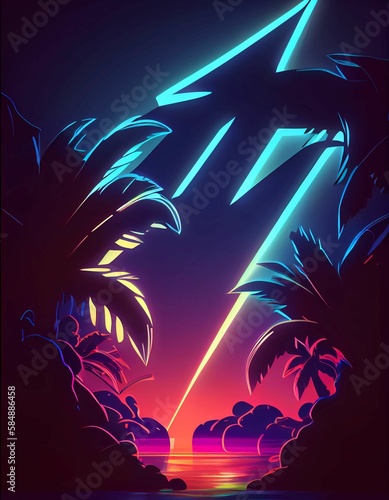 Neon lightning in the background. Generative AI.