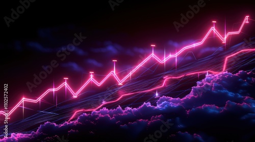 growth, chart, graph, upward, trend, rising, increase, progress, success, finance, market, economy, business, technology, digital, datum, innovation, future, investment, profit, development, advancement, statistic, performance, strategy, solution, concept, design, abstract, background, illustration, visual, glow, light, line, curve, cloud, dark, neon, pink, colours, style, modern, contemporary