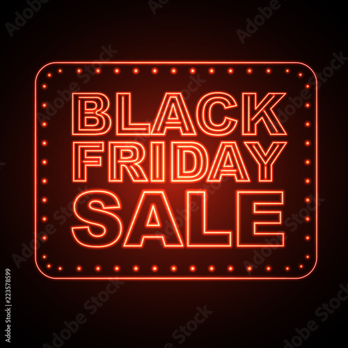 Neon sign black friday sale. Vintage electric signboard. Road sign