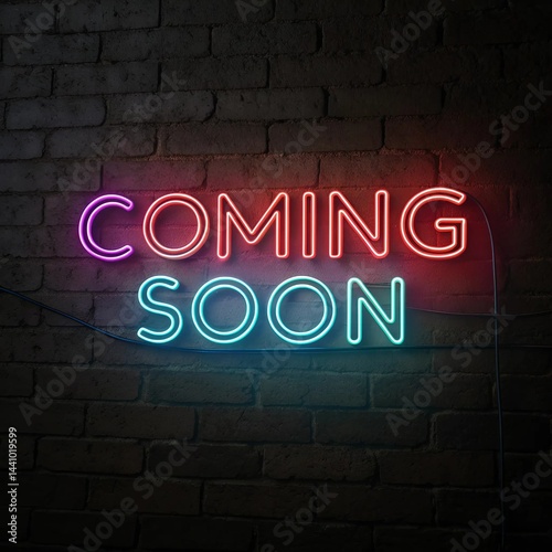 Neon sign displaying the words "Coming Soon" in bright colors against a dark background