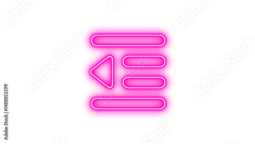 Neon Text Alignment Icon, Neon outdent icon glow with transparent background