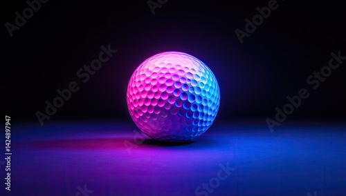 golf, ball, neon, light, pink, purple, blue, dark, background, sport, game, dim, illumination, glow, night, vibrant, colours, shadow, sphere, texture, recreation, leisure, competition, tournament, hole, course, club, putting, swing, drive, fairway, rough, green, tee, sand, bunker, player, strategy, skill, precision, accuracy, power, distance, impact, equipment, training, practice, professional