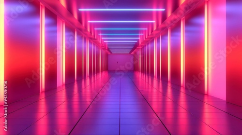 hallway, neon, light, pink, blue, purple, glow, corridor, abstract, architecture, modern, futuristic, interior, design, illuminated, bright, vibrant, glossy, reflective, floor, tile, ceiling, wall, geometric, pattern, line, shadow, perspective, empty, space, minimalist, cool, light, art, graphic, three-dimensional, render, digital, background, texture, gradient