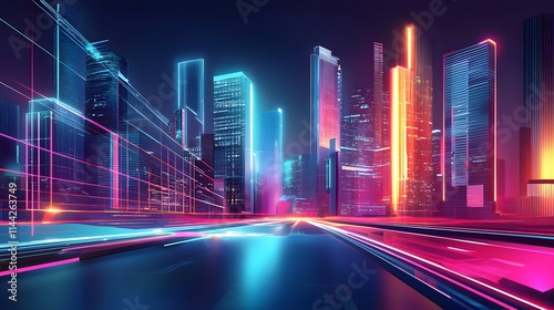 Neon-Lit Urban Landscape with Futuristic and Vector Elements