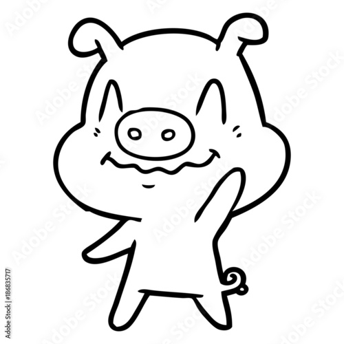 pig, animal, farm, nervous, funny, shy, cartoon, drawing, illustration, retro, doodle, freehand, free, hand, drawn, quirky, art, artwork, character, waving