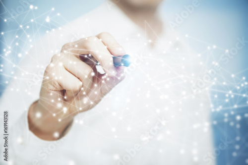 background, network, concept, business, businessman, hand, technology, virtual, corporate, cyber, polygonal, mesh, man, geometric, projection, science, tech, abstract, polygon, office, low, person, modern, human, professional, futuristic, showing, grid, matrix, hologram, digital, networking, connection, closeup, connected, dot, point, blurry, glowing, future, interface, innovation, communication, media, design, white, pen, drawing