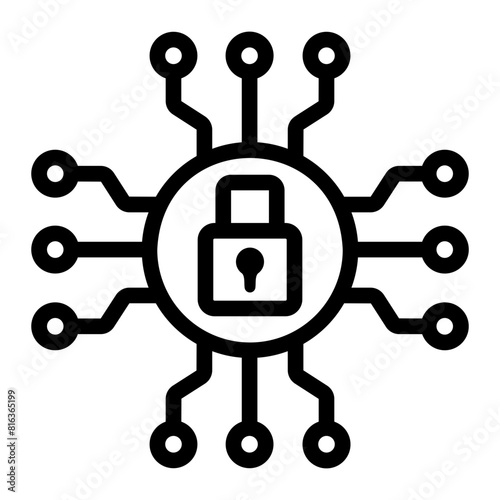 network, protected, protection, lock, server, datum, security, 29, icon, line, linear, outline, graphic, illustration