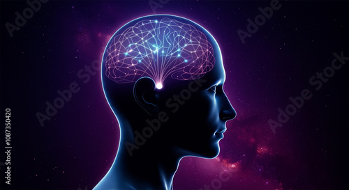 Network Neural Connection Science, AI Artificial Intelligence Concept Graphic, Digital Brain Light Connected Sci-Fi Design