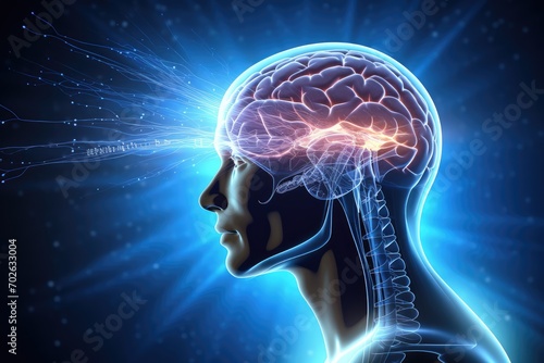 Neural realm Human Mind Illustration: Brain intricate neural circuitry. Neurotransmission receptors, dopamine and serotonin, play pivotal role in interplay of neurotransmitters signals neural circuit