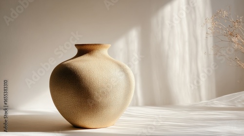 Neutral Ceramic Vase with Soft Lighting, Aesthetic Interior Decor Still Life Photography