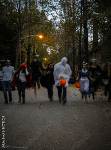 cat, night, candy, neighbourhood, motion, male, laugh, jump, jack-o-lantern, holiday, little red riding hood, halloween, sorcerer, ghost, vampire, fun, trick or treat, friends, street, female, running, fast, run, dress up, road, doll, pirate, costume, outside, caucasian, white, boy, person, people, teenage, teenage, young person, young people, teenage, youth, youth, minor, juvenile, juvenile, teenage, teenage, youngster, youngster, man, adult, adult, 20s, young adult, young adult, grown-up, girl