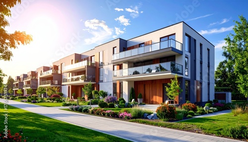 modern, suburban, block, sunrise, residential, real estate, real, estate, apartment, condo, architecture, building, sunset, flat, new, street, balcony, development, urban, window, condominium, facades, facility, construction, living, contemporary, rental, complex, property, exterior, front, accommodation, city, house, town, luxury, home, rent, site, blue, district