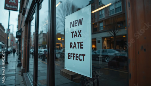 New tax rate effect sign displayed in city storefront, reflecting economic changes