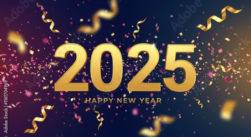 new year, 2025, happy new year, celebration, confetti, ribbon, gold, festive, hope, optimism, future, countdown, party, new year's eve, holiday, greeting card, design, illustration, graphic, background, abstract, sparkle, bright, vibrant, colourful, dynamic