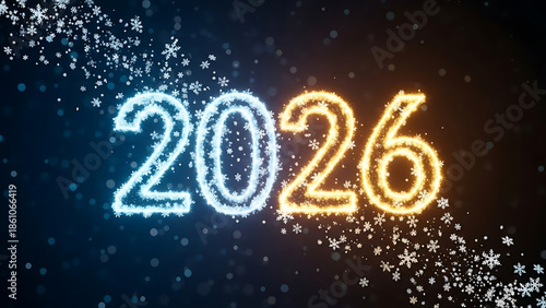 New Year 2026 celebration with snowflakes and sparkling numbers