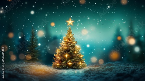 closeup, small, artificial, gold, lush, bright, christmas tree, new year, template, banner, poster, festive, beautiful, creative, green, background, bokeh, christmas, garland, card, copy space, vector, illustration, decorated, star, shine, twinkling, light, lantern, winter, cosiness, star, snowflake, decor, atmosphere, magic, concept, evening, light, decoration, burning, holiday, night, arrival, glow, warmth, romance