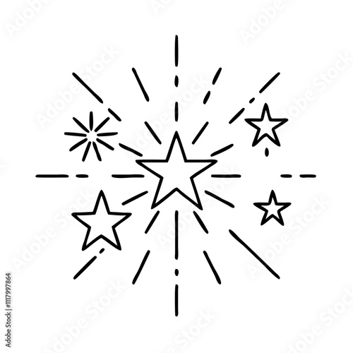 new year s stars icon, new year illustration, new year icon - simple black line art of new year s stars, symbolizing new year celebrations. new year vector.