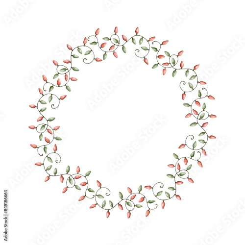 New Years Christmas hand drawn watercolor wreath of Christmas garland