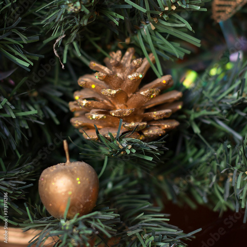 party, christmas, tree, fir, toy, cone, fir tree, fur-tree, humor, new year, gift, closeup, decoration, christmas tree, year, season, winter, conifer, joy, sphere, yellow, red, blue, shiny, traditional culture, tree branch, evergreen tree, celebration